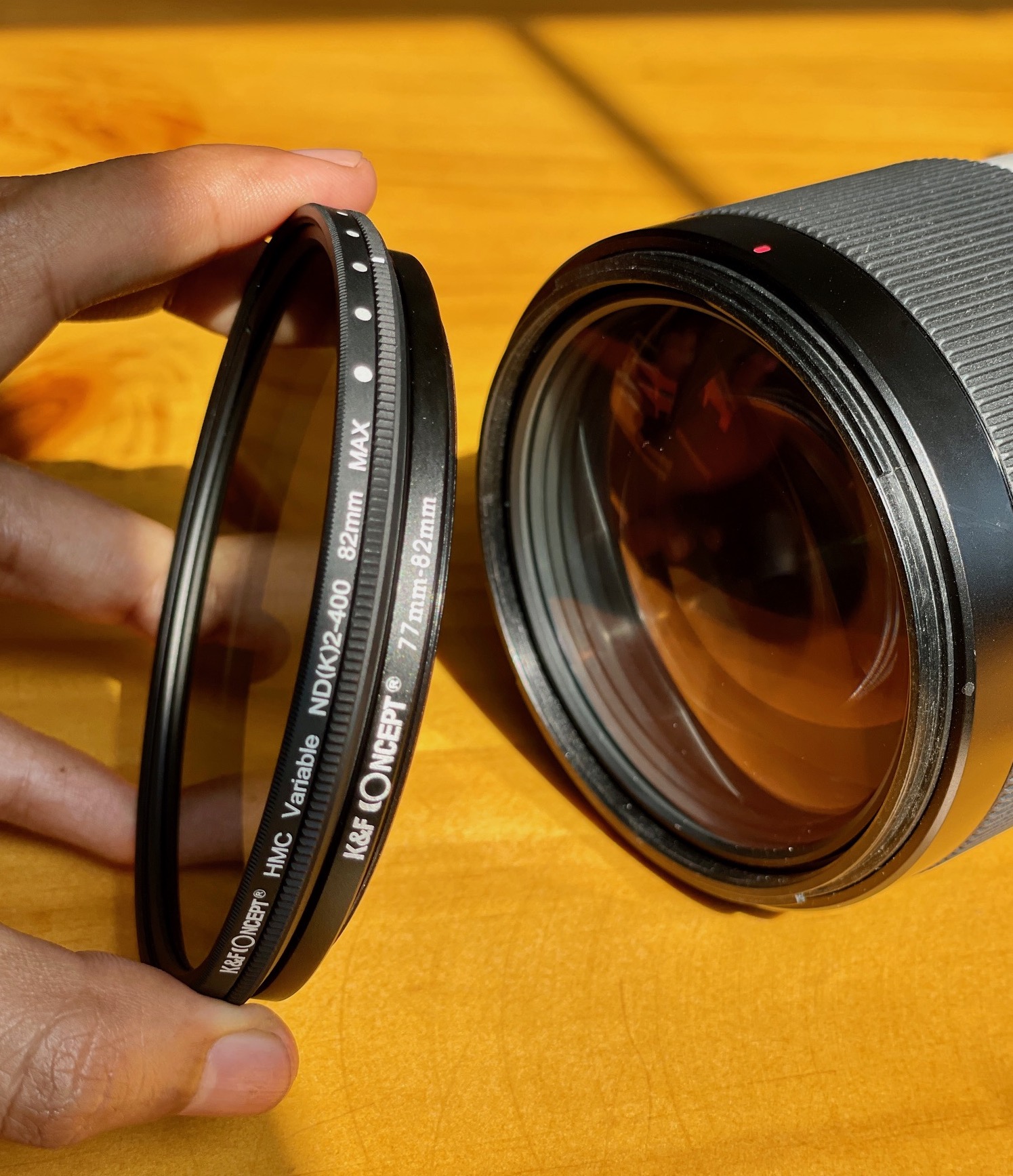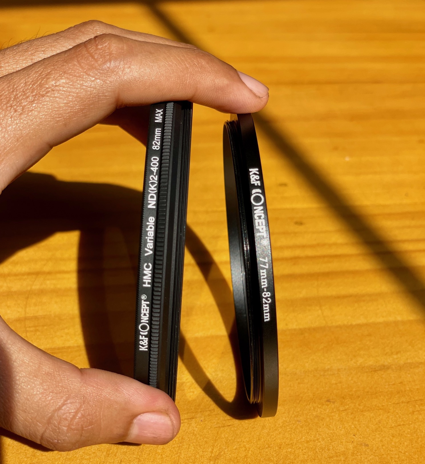 As a curious thing, something I found already within my gear was the filter ring adapter K&F Concept that I use to be able to use the same filter in my G Master lens 70-200mm that is 77mm. So it worked really well together with the K&F Concept 82mm ND2-400 and here are a few pictures of them.